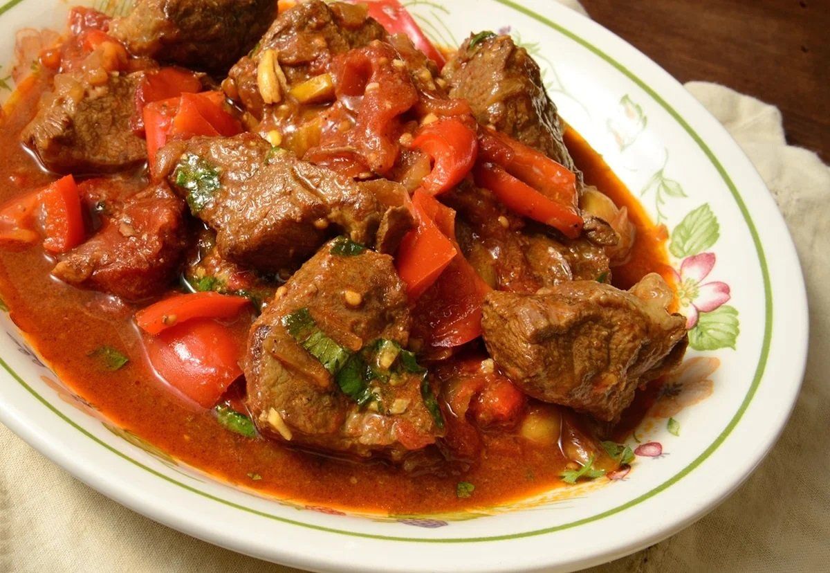 Нарежьте говядину тонкими ломтиками толщиной примерно 0,5 см
